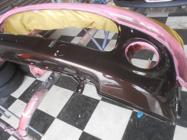 バンパーを車から取り外し、フォグランプ グリルを分解し、バンパーとグリルを修理し塗装しました。