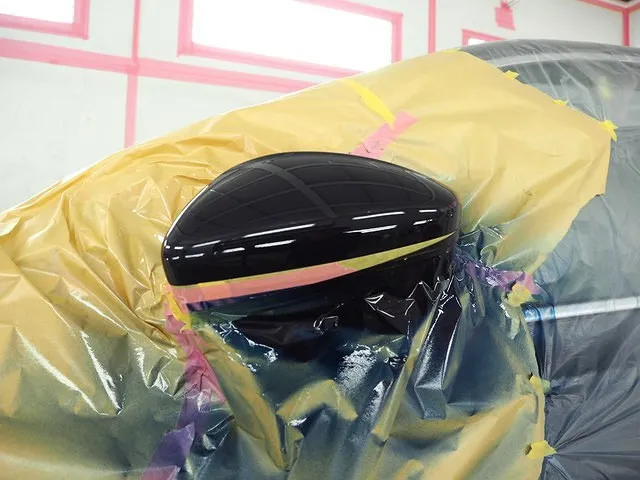 プジョー 308 左ドアミラー きずの板金修理塗装の全ての工程が終了し、完了しました。