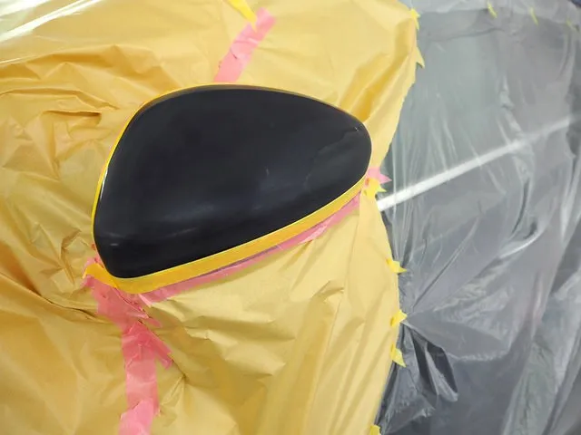 マスキングをしてからサフェーサーという下地を塗装し、ボディーカラーの塗装準備をします。
