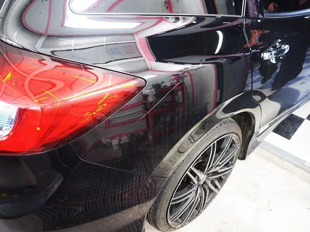 BMW E90 320i リアドア リアフェンダー サイドスカート ホイール きずへこみ 板金塗装修理 新潟市のお客様