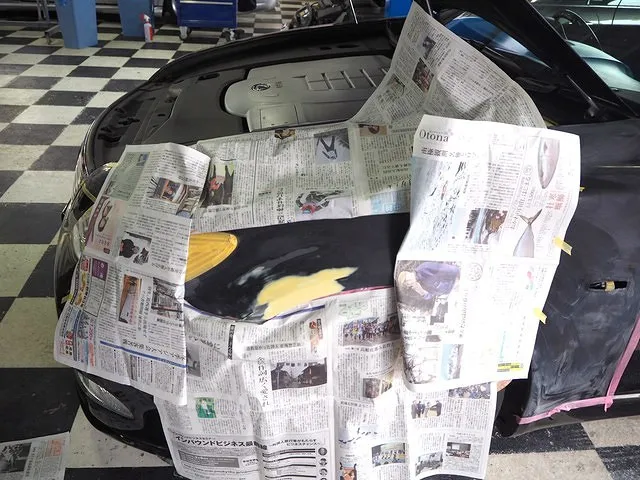 マツダ RX-8 全塗装④ マスキング 新潟市のお客様