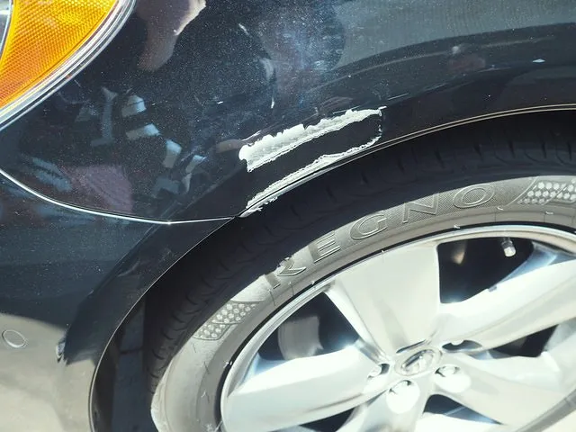 左フロントフェンダーに大きく鋭いきずがあります。