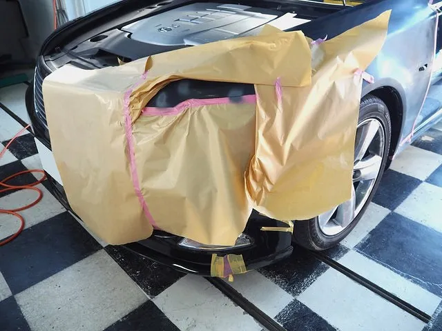 塗装ブースの中に移動してしっかりとマスキングをします。