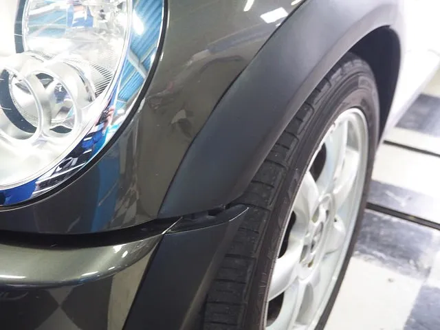 BMW ミニクーパー フロントバンパーもズレが生じています。