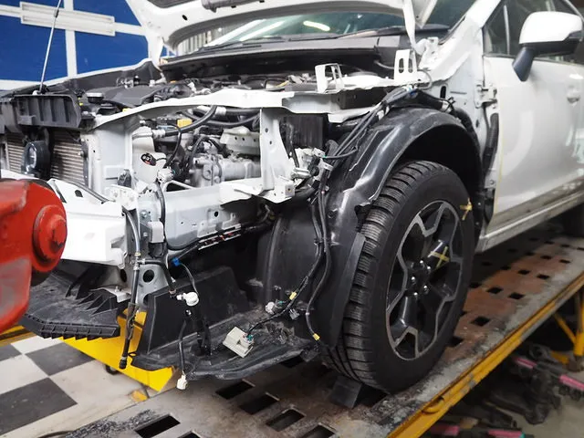 スバル XV フロント骨格修理、フレーム修復をしています。