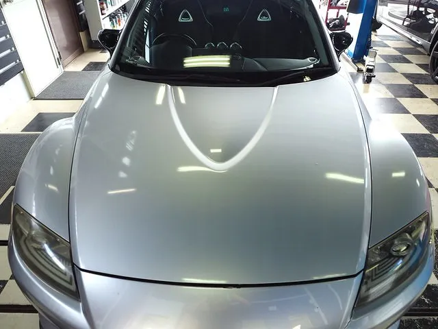マツダ RX-8 フロントバンパー、ボンネットの全塗装前の状態です。