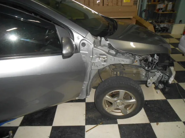 フロントバンパー ヘッドランプ フロントフェンダーを取り外して、ドアが取り付いているフロントピラーという柱を修理します。
