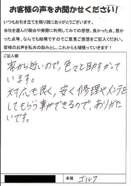 《お客様の声》家から近いので、色々と助かっています。