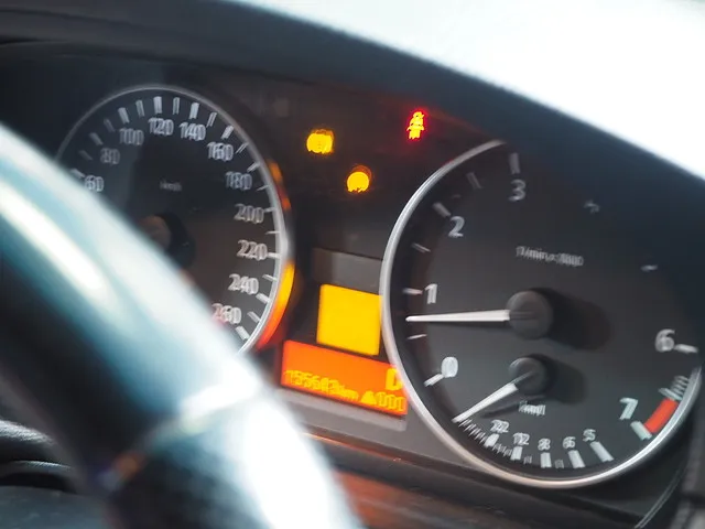 写真がぶれていますが、黄色い警告灯が点灯しています。ブレーキとステアリングです。
