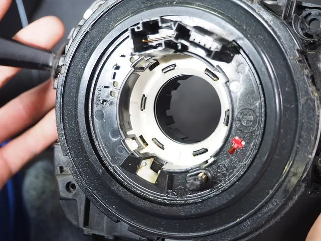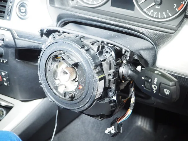 エアバッグとハンドルを外してセンサーを点検します。