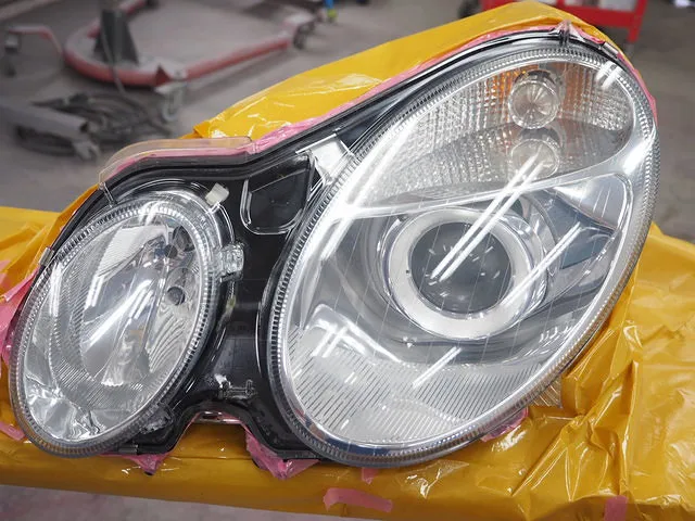 メルセデスベンツ S211 E320 ヘッドランプ黄ばみ修理 長岡市のお客様
