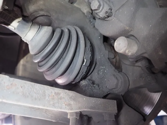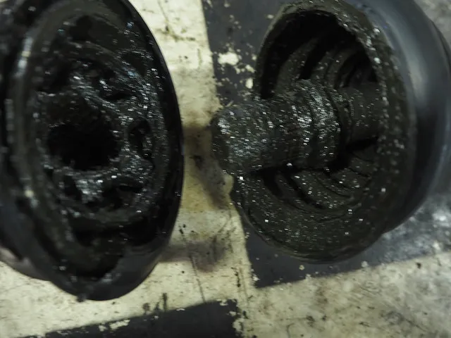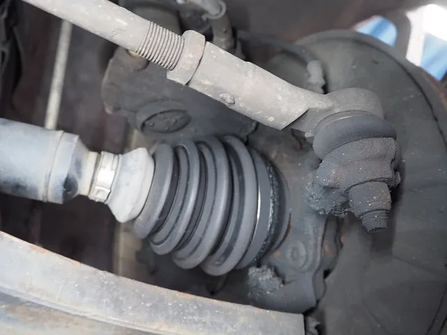 左右のドライブシャフト両方ともグリスが飛び散っています。