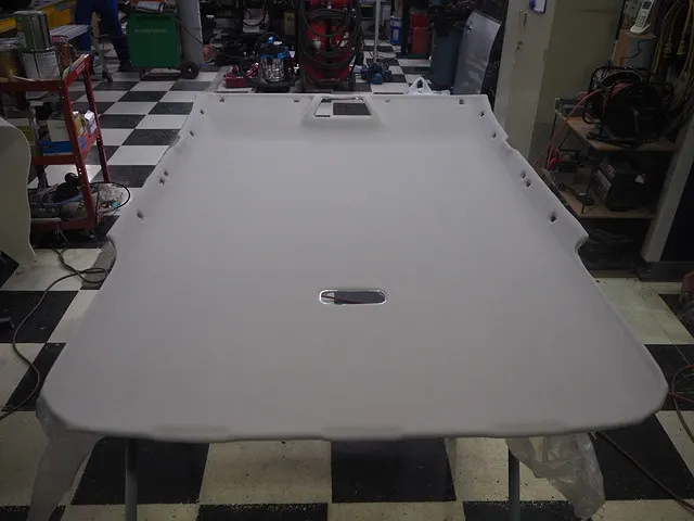 生地を張り替えた天張りを、車に取り付けて完成です。