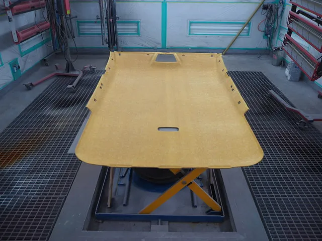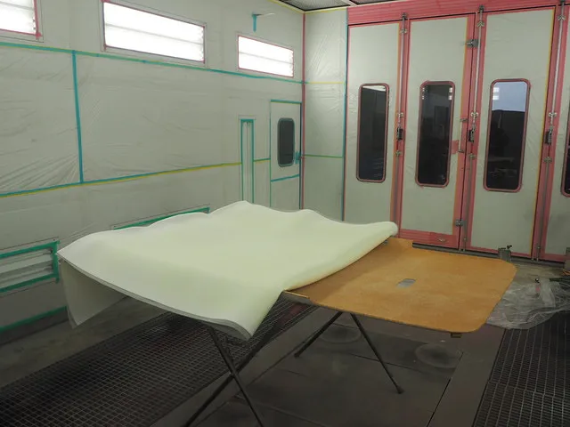 埃を抑えた、きれいなクリーンルーム 塗装ブースの中で生地を張り替えます。