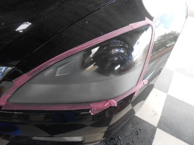 このあとは耐紫外線のヘッドランプクリヤーでヘッドランプにハードコート膜をつけます。