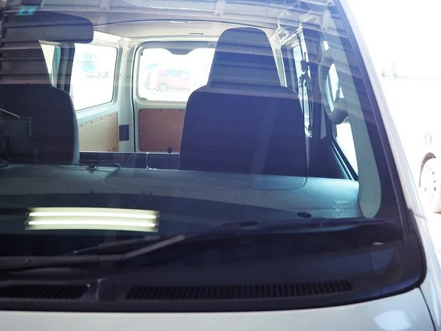 トヨタ ハイエース 飛び石被害によるひび割れ ガラス交換での入庫です。