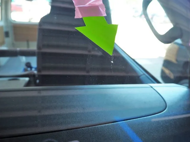 トヨタ ハイエース フロントガラスに小さいですがひび割れを確認しました。
