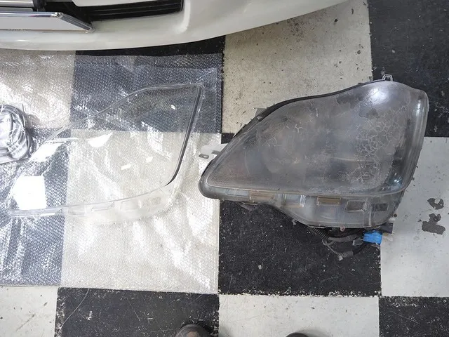 トヨタ クラウン ヘッドライトレンズが劣化し、くもった状態なのでレンズ交換をします。