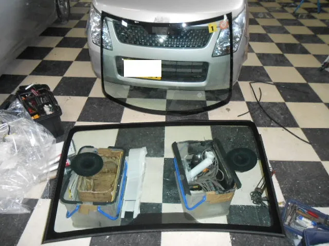 新潟県燕市のお客様 スズキ ワゴンR フロントガラス交換の入庫です。